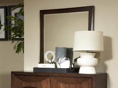 Accent your master bedroom with the 4 drawer Madden dresser & mirror. The wide profile dresser boasts a unique design, with deep scalloped top and bottoms on the drawer fronts in contrasting wood grains. Four large drawers keep your wardrobe tidy and organized and the large framed mirror completes your dressing area. With the addition of the mirror, the height increases to 75".