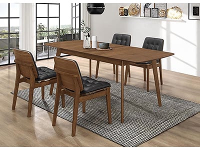 Elevate your dining space with the Redbridge Dining Table and 4 Redbridge Dining Chairs, a sleek and modern ensemble designed for both style and comfort. The table features a rich wood finish and clean lines, perfectly complemented by the chairs’ cushioned seats and supportive backs. Ideal for everyday meals or special gatherings, this set brings timeless elegance to any home.